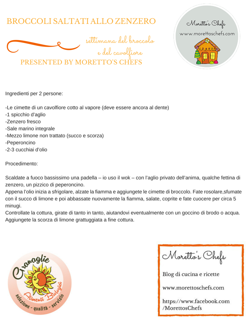 Settimana del broccolo&cavolfiore: broccoli saltati allo zenzero 10 marzo 20159 marzo 2015 In collaborazione con il negozio di prodotti biologici Granaglie di Milano, questa settimana sarà interamente dedicata al broccolo e al cavolfiore. Oggi vi diamo un’idea per dare una marcia in più al vostro contorno di broccoli al vapore! Condividi:TweetMi piace Caricamento... Correlati