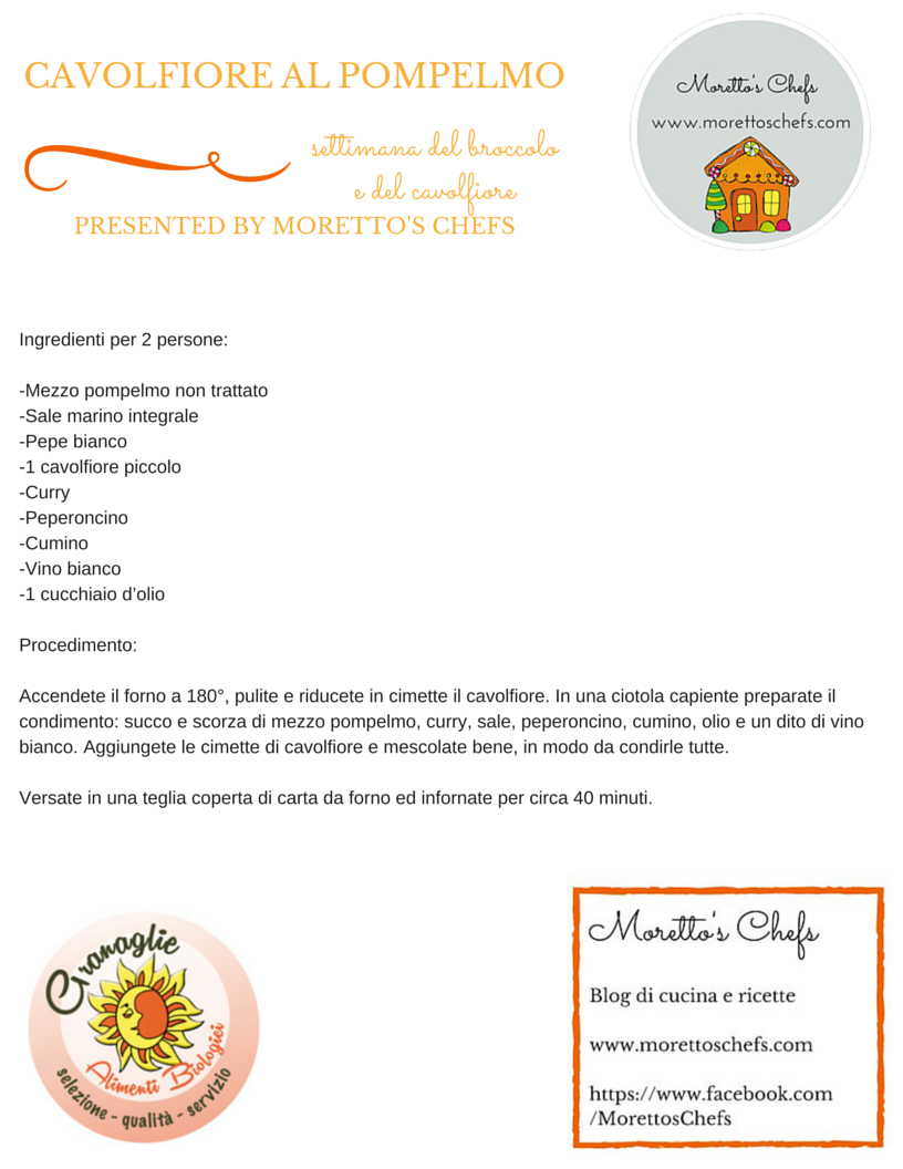 Altro contorno, che unisce al cavolfiore il gusto aspro ed amarognolo del pompelmo. Ottimo abbinato al pesce.