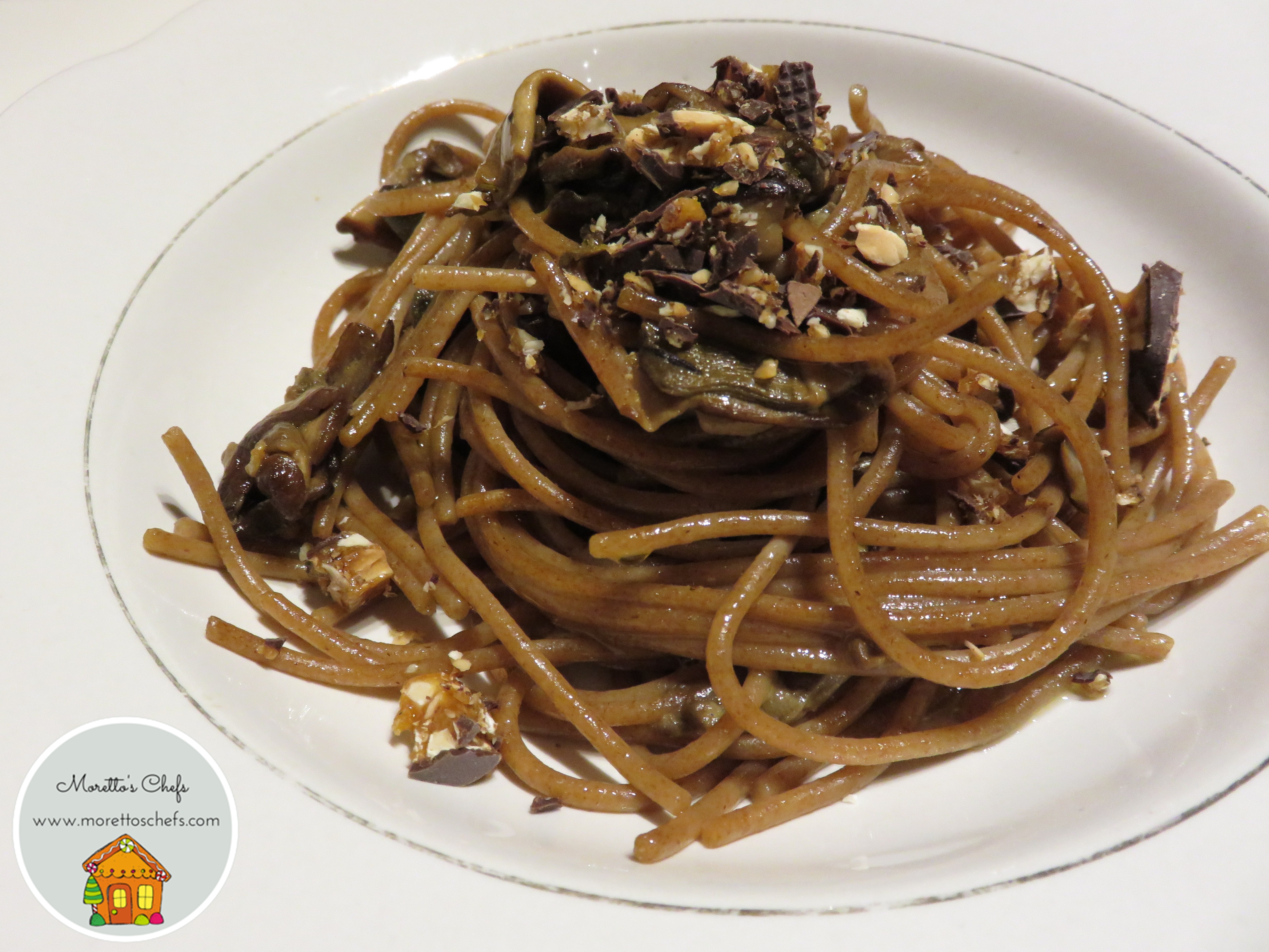E invece… Il sapore di bosco dei porcini si sposa benissimo con i torroncini ricoperti di cioccolato: i profumi del cacao, la croccantezza delle nocciole sono complementari ai funghi e il gusto rustico e sapido degli spaghetti di farro armonizza i sapori. E’, però, fondamentale bilanciare bene la dolcezza dei torroncini, ecco che entrano in azione capperi e peperoncino.
