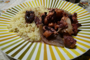 Per questo motivo nel mio freezer non manca mai un polpo. Basta tirarlo fuori al mattino per portare in tavola la sera il polpo in galera, un piatto gustoso, che accompagnato con del cous cous e delle verdure diventa un appetitoso piatto unico. I tempi di cottura in effetti non sono da “salva cena”, ma mentre cuoce il polpo avrete tutto il tempo per preparare il contorno, il couscous, apparecchiare con cura e riposarvi anche sul divano (o, se siete come me, fare le altre mille cose ancora da fare). A favore di questo piatto però va detto che è veramente la “ricetta più facile del mondo“, come dice lo chef televisivo Simone Rugiati, da cui ho preso la ricetta.